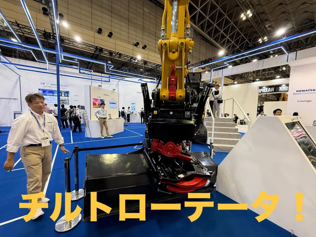 今回のCSPIで感じたのは建機メーカーさんは勿論のこと測量機メーカーさんもアタッチメントがぐるぐる回るチルトローテータを装着した建機を展示してていたこと😳